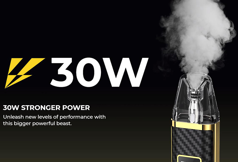 該設備具有強大的30W 輸出功率,使其能夠產生濃密的雲彩和豐富的風味。